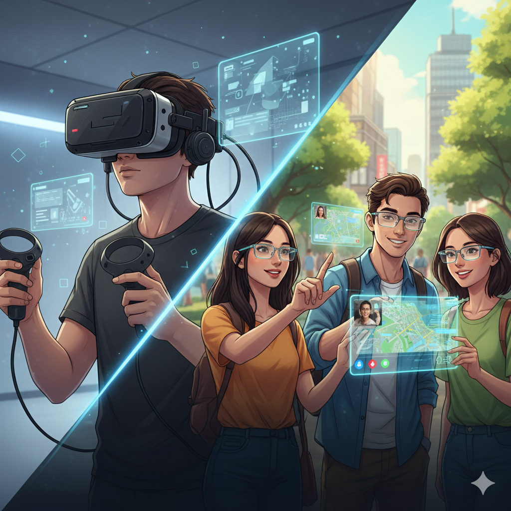 하지만 무겁고 비싼 헤드셋은 '게임기'라는 인식을 넘지 못하며 대중화에 실패했습니다. 이 경험을 통해 두 기업 모두 '대중 시장의 답은 안경형'이라는 결론에 도달했고, 이제는 무게중심을 안경형으로 빠르게 옮기고 있습니다.